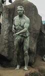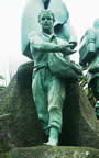 En el frontón posterior, formado por un corte vertical de la roca, de una altura de 5 mts. X 4 mts. de ancho, se ubica un relieve en el que figuran el Padre de la Patria General don Bernardo O"Higgins, principal impulsor de la idea de tomar posesión del Estrecho de Magallanes y sus territorios, y quien antes de su muerte dijera: "Magallanes, Magallanes"; palabras que se veràn en al parte superior de muro, a la derecha de O"Higgins, aparece el Presidente de la República don Manuel Bulnes y a su izquierda, aparece el Intendente de Ancud don Domingo Espiñeira, quien en ejercicio del cargo dispuso la construcción de la goleta de guerra Ancud y el alistamiento de la expedición.