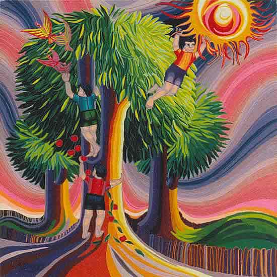 Hebras acrílicas sobre madera