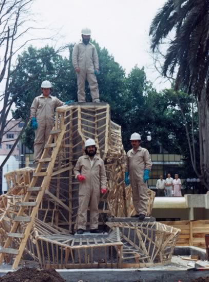 Equipo construcción base Monumento a la Araucania